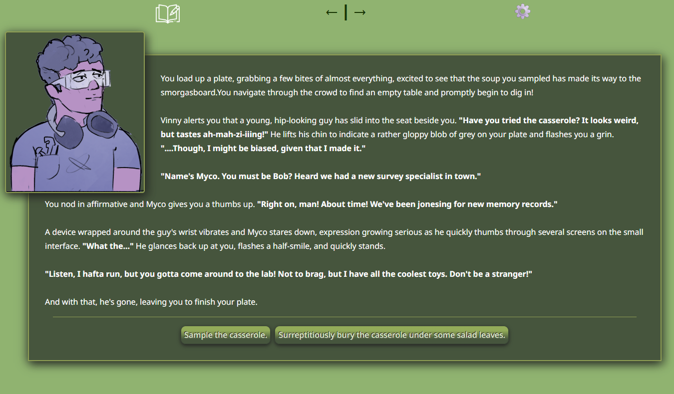 This is a point and click interactive fiction story with educational elements.